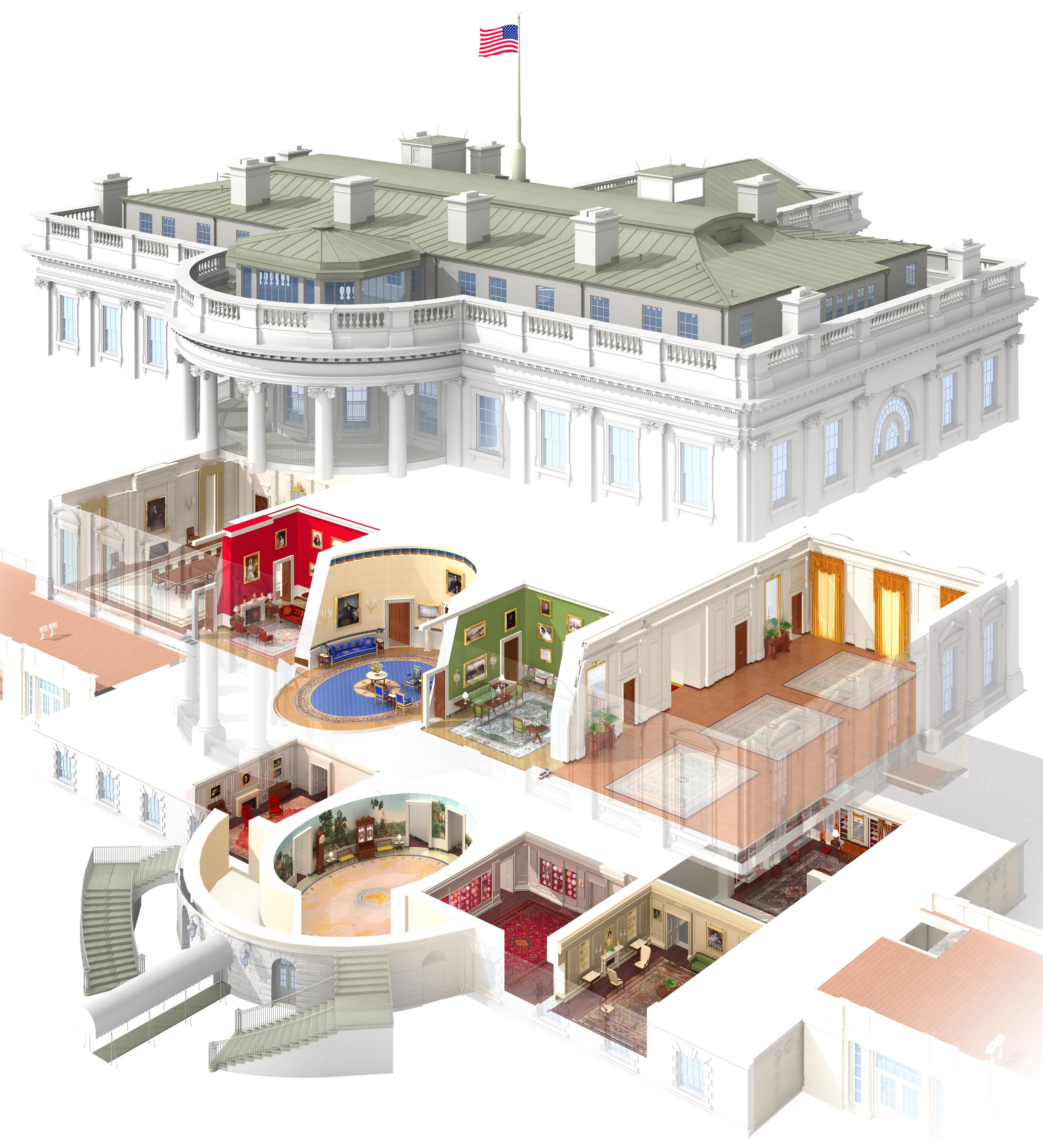 A few years ago, Luke Hayman of Pentagram contacted me about doing a cutaway illustration of the White House for the White House Historical Association guidebook. (This was during the Biden administration.)